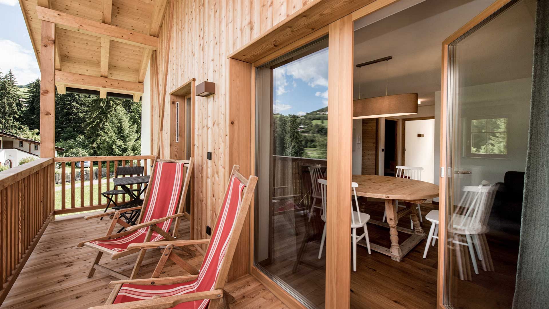 The balcony of the apartment offer a cozy atmosphere and a beautiful view. On the southeast side you can see the Schlern massif with the Santer and Euringer.